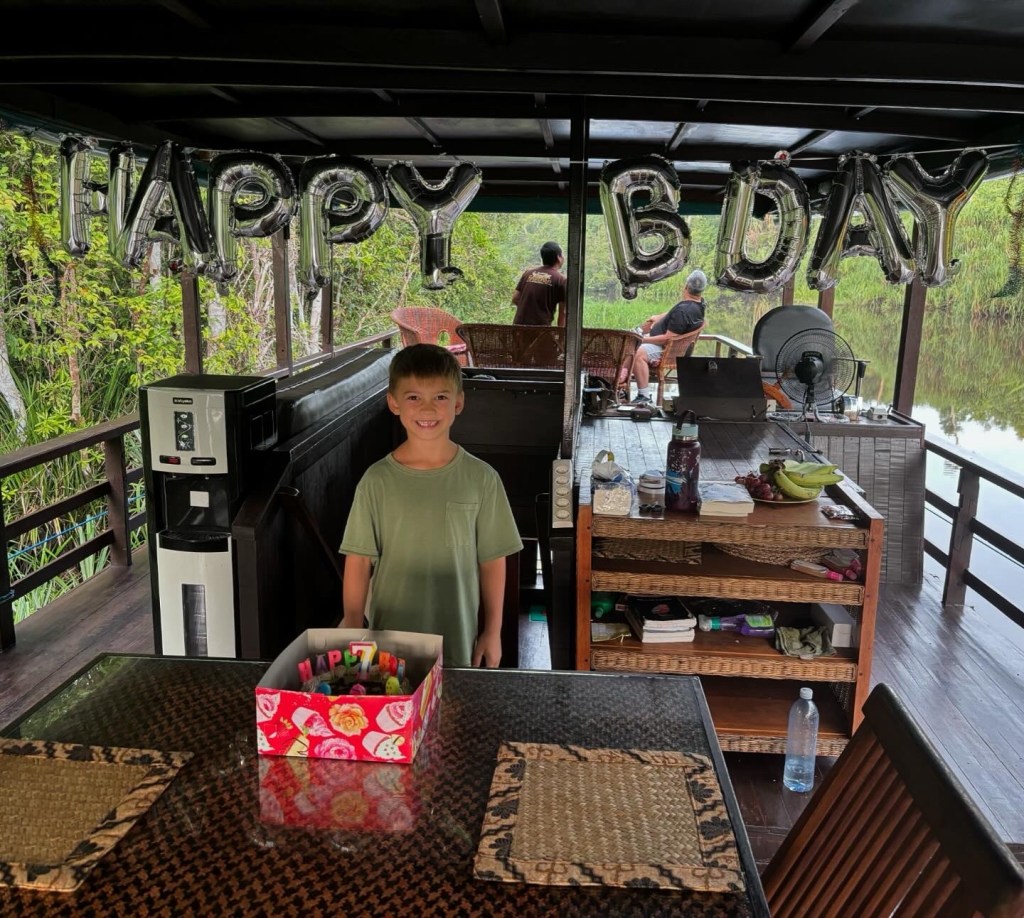 The celebration began back on the boat. Happy Birthday to Jack! Who turns 7 on a boat in Borneo? We brought presents onto the boat to celebrate and the chef made a delicious cake for him. We sang away, opened presents and stuffed our face with cake. What a special birthday for our special little man.