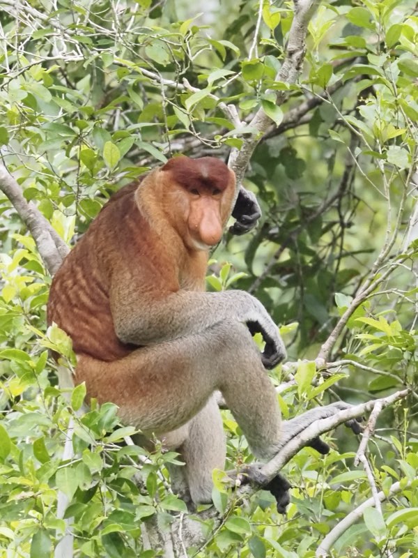 That night moored upon the river shores a special treat unfolded. 180 degrees of proboscis monkeys provided our evening entertainment. There were 3-4 groups, each anchored by their dominate male, finishing dinner and settling into their branchy beds for the evening. Viewing these communities in their natural habitat, unspoiled, was a highlight of the trip.