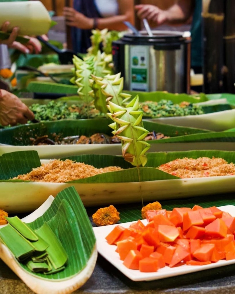 I’m confident Amanda’s inner dialogue was pretty similar. After a group share session it was time for the mindful lunch. A spectacular vegan spread was prepared. Beans, tempeh, rice, potatoes, mangos and more. The highlight was the sambals, spicy salsa you pair with your food. Oh how we love our sambals.