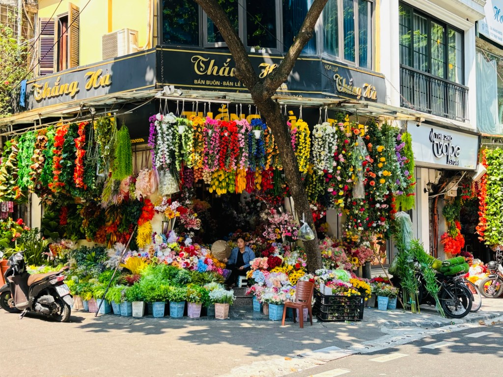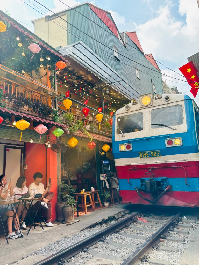 Our last day of the trip started with a walk to the famous train street. It’s a street, where you sit one foot from a train track sipping coffee while the train goes by! Half amazing, half terrifying we drank our egg coffee and watched the silver bullet fly by! Old Quarter Hanoi was constructed around the 36 guilds that sprung up in the ancient capital around the 13th century. Each street had a theme; street of sugar, street of herbal medicine, street of silver, bamboo, combs…..you get the point. We mapped out our street plan and traversed the busy city. Uhm, no silver on silver street? Ok, no fabric on fabric street, hhm. A handful of streets in we realized the modern world took over. Perhaps there were resemblances of the ancient guilds…..but mostly it was just day to day shops.
