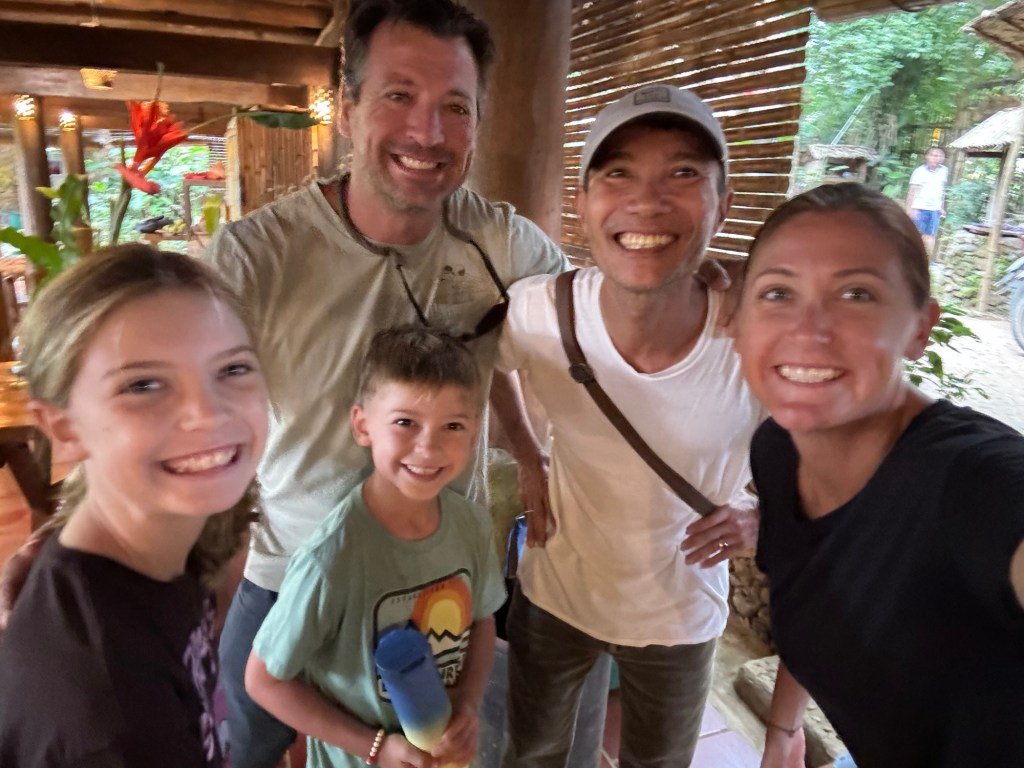 I would do Vietnam an injustice if I did not recognize the warmth of the Vietnamese people. Every stop of the way we felt it. After our Halong Bay boat snafu a team member rushed to find fishing polls for the kids to squid fish. He knew it wasn’t squid season and nothing would happen, but he sensed how much the kids would enjoy it. Chef Duc, his family and friends did not just provide us recommendations in Hoi An. They welcomed us to their family dinner and shared time with our family. When we arrived at their restaurant he had a table already reserved and comped the wine and drinks for the children. Days later he was still checking on us to make sure we maximized our trip. Amanda left her airpods in the car from Pu Long to Hanoi. We contacted Dzuy and he arranged for them to be dropped off at his friends coffee shop in Hanoi. Zoom, the owner of Pu Luong Tree House tried to meet us for coffee in one of the towns so our children could meet. The list goes on and on. These new friends did not do this to make a buck or for a review; they were that kind of people. Warm and welcoming. Sites, sounds, attractions draw you to a place. Years later when you look back it was the people you remember and the way they made you feel. Thank you.
