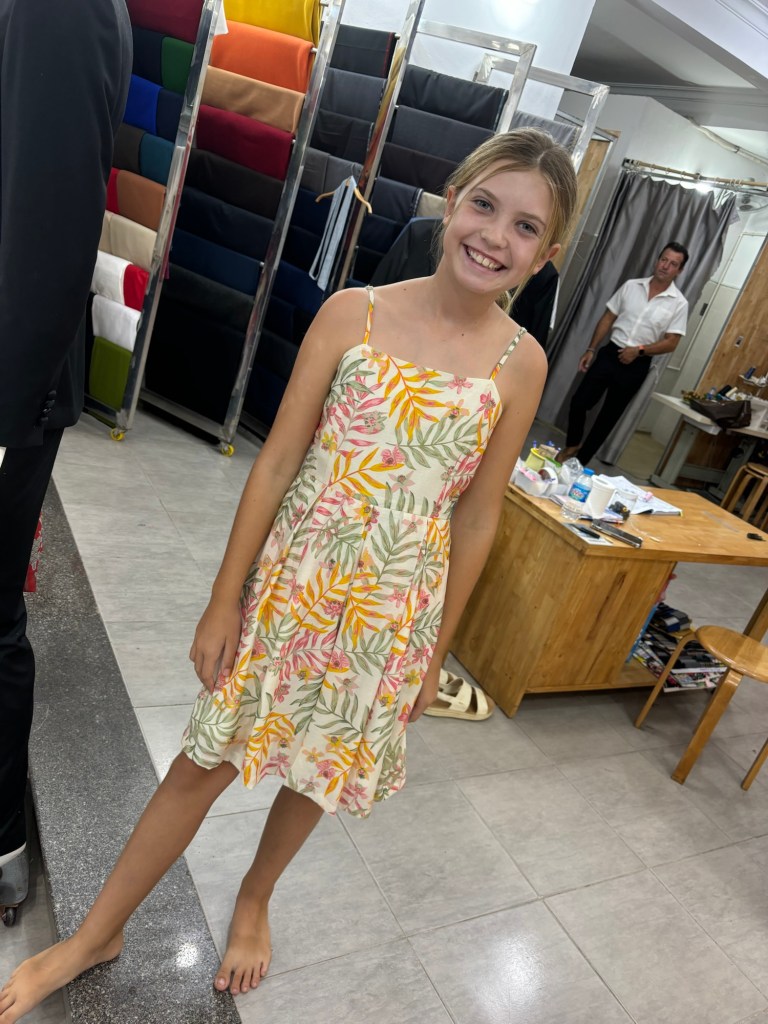 The shopping began the next day. We went to a local tailor so Amanda could get a fancy dinner dress custom made and I a suit. The service so fast and the cost so incredibly reasonable we ended up with a dress, two blouses, a women’s sport coat, a suit, a tux, a dress for Lyla, a shirt for Jack all for $800! We spent the next 48 hours running back and forth to the tailors for final fittings, tweaks, and try-ons until everything was perfect. What an experience! We were so grateful for the hard work and fun Ca Li Tailor provided us. To top it off, the business owner’s name (English name that is) was Amanda!